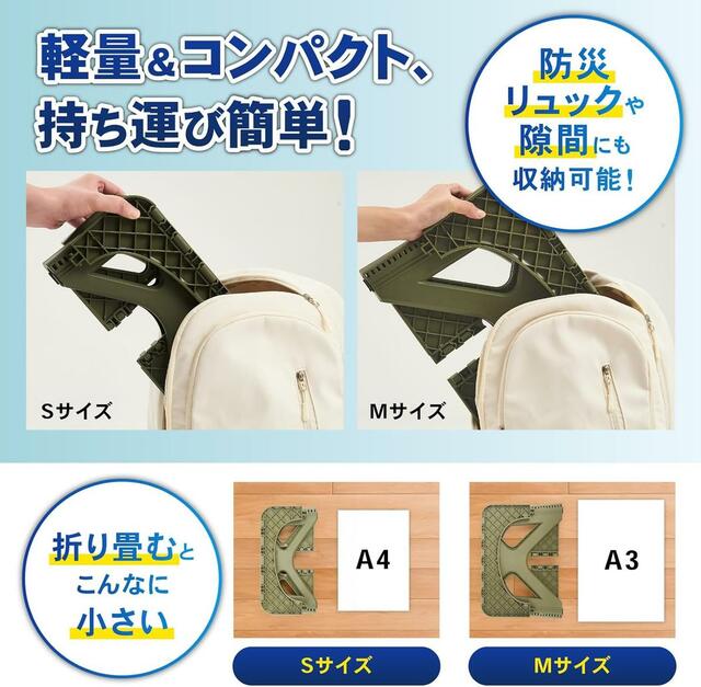 こちらは折りたたみタイプで、SサイズだとA4用紙、MサイズだとA3用紙くらいになるみたいです。
