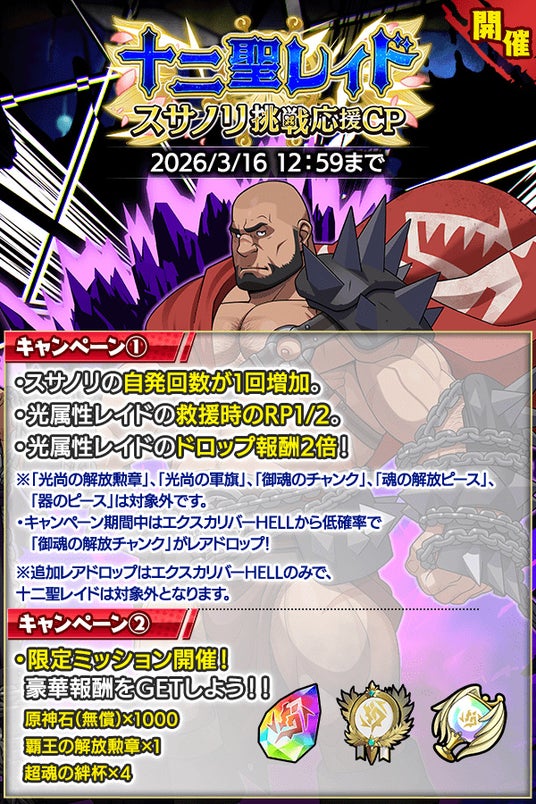 ■十二聖レイド スサノリ挑戦応援キャンペーン!