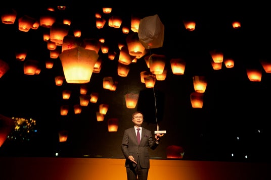 そして、俳優・矢田亜希子さんをゲストに迎え、台湾伝統の祈願「ランタン飛ばし」と日本伝統の祈願「ダルマの目玉入れ」を行い、日台の未来への想いを託しました。