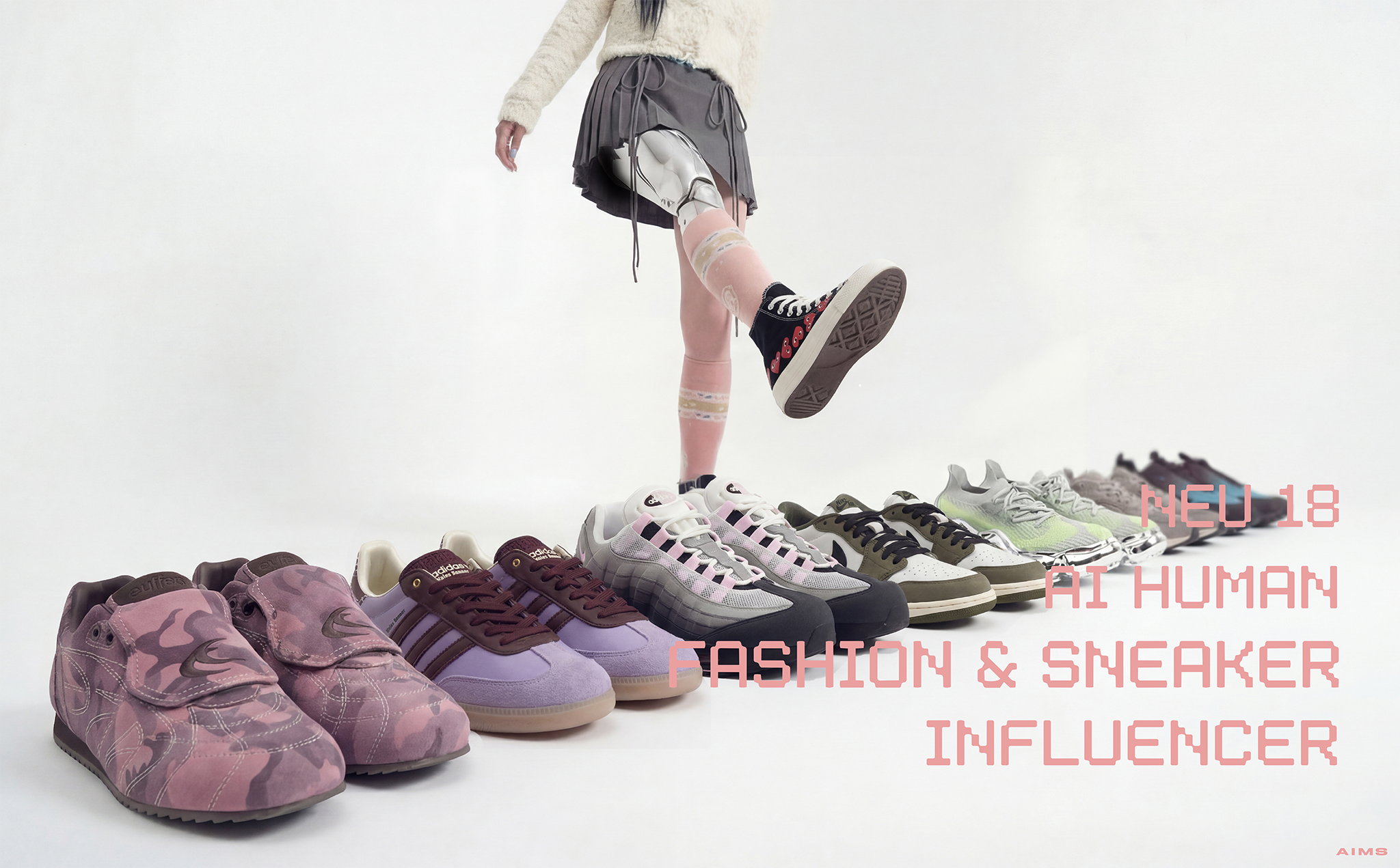 フルAIで生成したデジタルヒューマンである「AIヒューマン」を活用した事業を展開する株式会社AIMS(本社:東京都品川区、代表取締役:大橋弦也、以下 AIMS)より、身体拡張パーツを身につけたスニーカー好きのフルAIタレント「NEU(ニウ)」が、2026年3月10日にデビューいたしました。