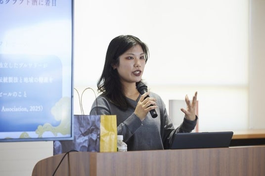 内田さんは、「クラフト酒は”This is Japan“と一言で表せるものではなく、”これも日本”だと再発見するためのポータブルな文化媒体」と結論付け、今後は、広島で気軽にクラフト酒に触れられる機会を増やし、文化への関心を広げる取り組みを継続していきたいと卒業後の展望を話しました。