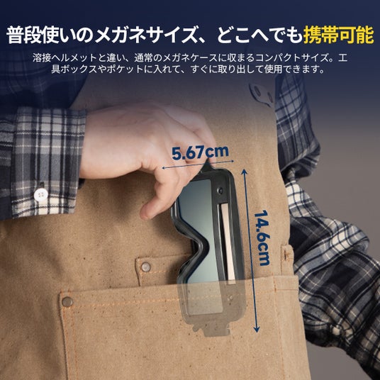 2、コンパクト設計 ― 収納・携帯に便利本製品は、一般的なメガネに近いコンパクトなサイズ感を採用しています。工具箱や作業バッグにも収まりやすく、必要なときにすぐ取り出して使用できます。