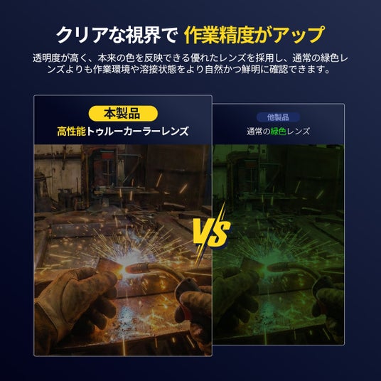 明状態ではブルーグレー調の視界となり、溶接ビードや母材の状態を自然な色味で確認できます。色味の偏りを抑えることで、作業中の判断を妨げにくい設計となっています。