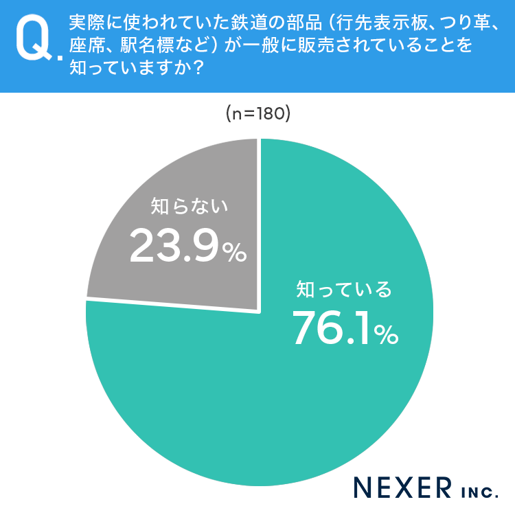 ■76.1%が、鉄道部品の一般販売を「知っている」と回答