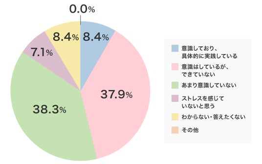 日中のストレス管理、「意識」は5割近くですが、実践は1割未満