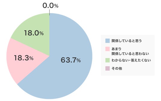 大きな差はみられませんでしたが、50代後半から60代前半で「関係あり」という回答が7割をこえています。