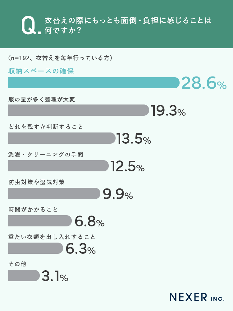 ■28.6%が、衣替えでもっとも面倒なのは「収納スペースの確保」と回答