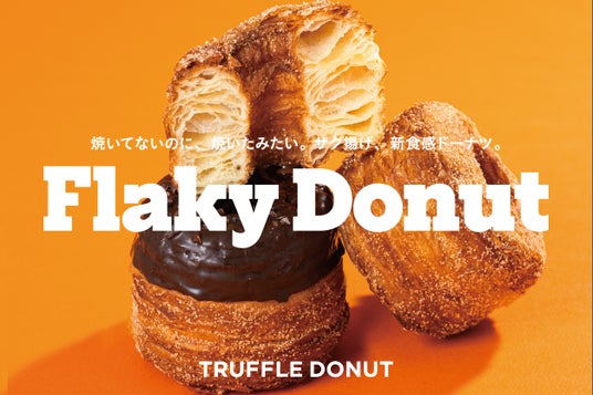生ドーナツ専門店「TRUFFLE DONUT(トリュフドーナツ)」を運営する株式会社トリュフドーナツは、2026年3月20日より、新商品「Flaky Donut(フレーキードーナツ)」を全国店舗にて発売いたします。本商品は、バターとパイ生地を幾層にも重ねた多層構造の生地を揚げることで生まれる、焼いていないのに焼いたみたいな新食感が特徴の、新ジャンルドーナツです。