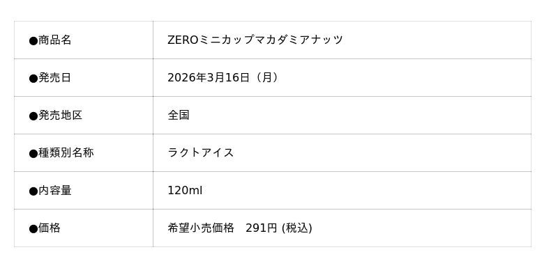 株式会社ロッテは、砂糖ゼロ・糖類ゼロ(*)のアイス「ZEROミニカップマカダミアナッツ」と「ZEROミニカップ紅茶&ビスケット」を3月16日(月)に発売いたします。原料を1つ1つ選び抜いて、砂糖ゼロ・糖類ゼロ(*)なのにアイスのコクや美味しさを感じられる仕立てで、まろやかなバターアイスにローストマカダミアナッツの食感、厳選した2種の紅茶のアイスにココアビスケットクランチの食感をお楽しみいただけます。また、ロッテ初となる植物由来のバイオプラスチック配合ふたを使用しており、環境にも配慮した商品です。美味しく、楽しく、間食をお楽しみください。