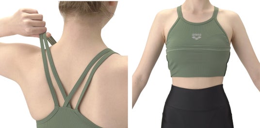 肩紐を「ダブルストラップ*」にすることで1点にかかる圧を2点に分散させ、肩に感じる負担を減らし、よりよい着心地を実現しました。