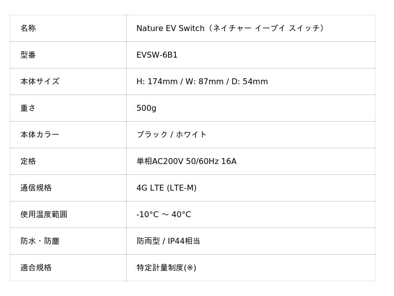 (※)本製品は特定計量制度の要件に適合していますが、現時点では「Nature Home」アプリ上での計量データの表示機能は実装しておりません。特定計量制度に関わる用途での利用を検討されている場合は、お問い合わせください。