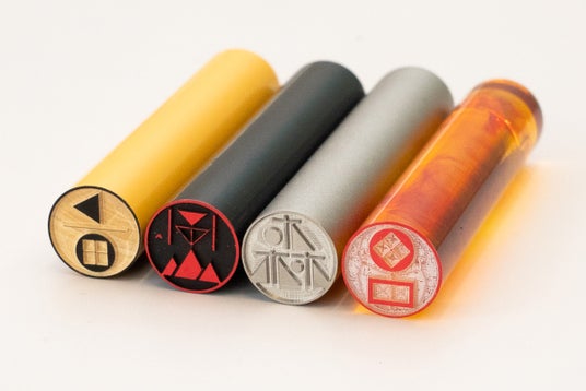 現代ポップカルチャーを表現するようなデザインは作れないか?との想いから生まれた最新デザインは、幼い頃に夢中で組み立てた「積み木」のようなデザイン。お名前の各パーツを積み木のブロックのように捉え、重なり合う奥行きを感じさせる三次元的なデザインに仕上げています。現代のポップカルチャーに通じる軽快さと、パズルのピースがピタッとはまった時のような快感を、一本のハンコの中に凝縮しました。