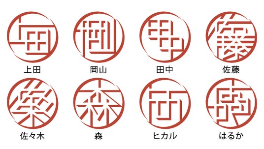 基本的に実印として使うこともできる(※2)タイポグラフィーはんこ「TYPO」。まるで自分だけのロゴマークのようなデザインのハンコは、自分の名前ならどんなデザインになるか想像しながら到着を待つ、なんていうことも楽しさのひとつです。