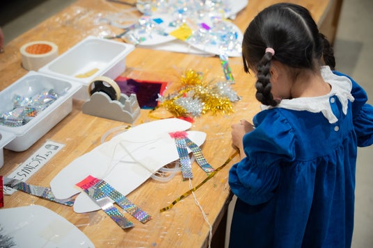 ゴムチューブで背負える形にして、紐で羽が動く仕掛けも加えます。最後はホログラムシールやカラーセロファンなどのキラキラ素材で飾り付けをすれば、「世界にひとつだけの羽」が完成します。羽をつけてパタパタと動かしながら外を歩けば、気分はまるで春の虫。虫の羽をつけて、親子で生きもの探しに出かけるのも楽しみ方のひとつです。