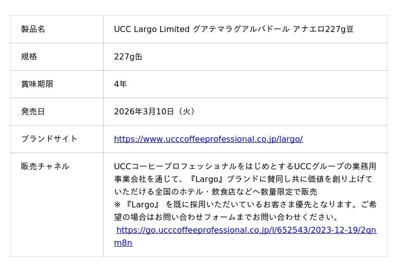 UCCグループで業務用サービス事業を展開するUCCコーヒープロフェッショナル株式会社(本社:東京都港区、社長:橋本樹一郎)は、UCC業務用レギュラーコーヒーのラグジュアリーブランド 『Largo』(ラルゴ)から、毎年形を変えて特別な体験をお届けする 『Largo Limited』 シリーズの2026年モデルを3月10日(火)に数量限定で発売します。