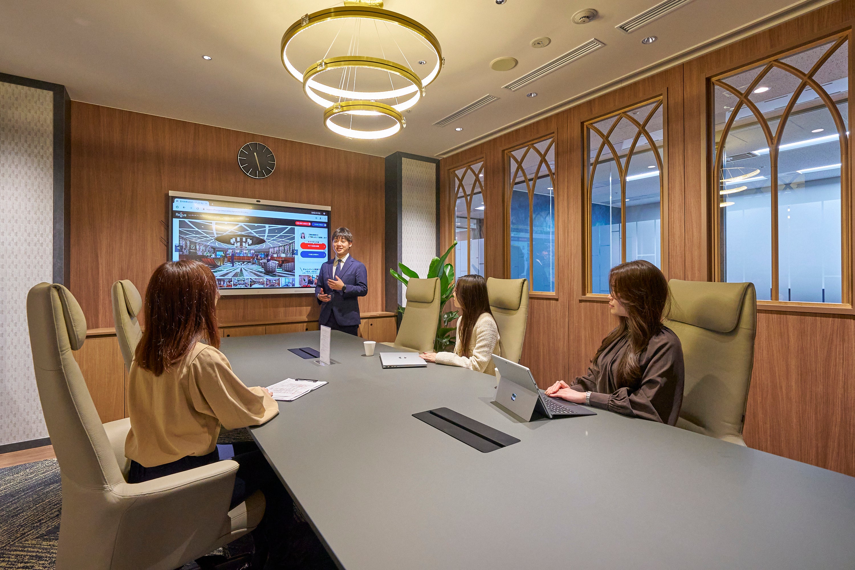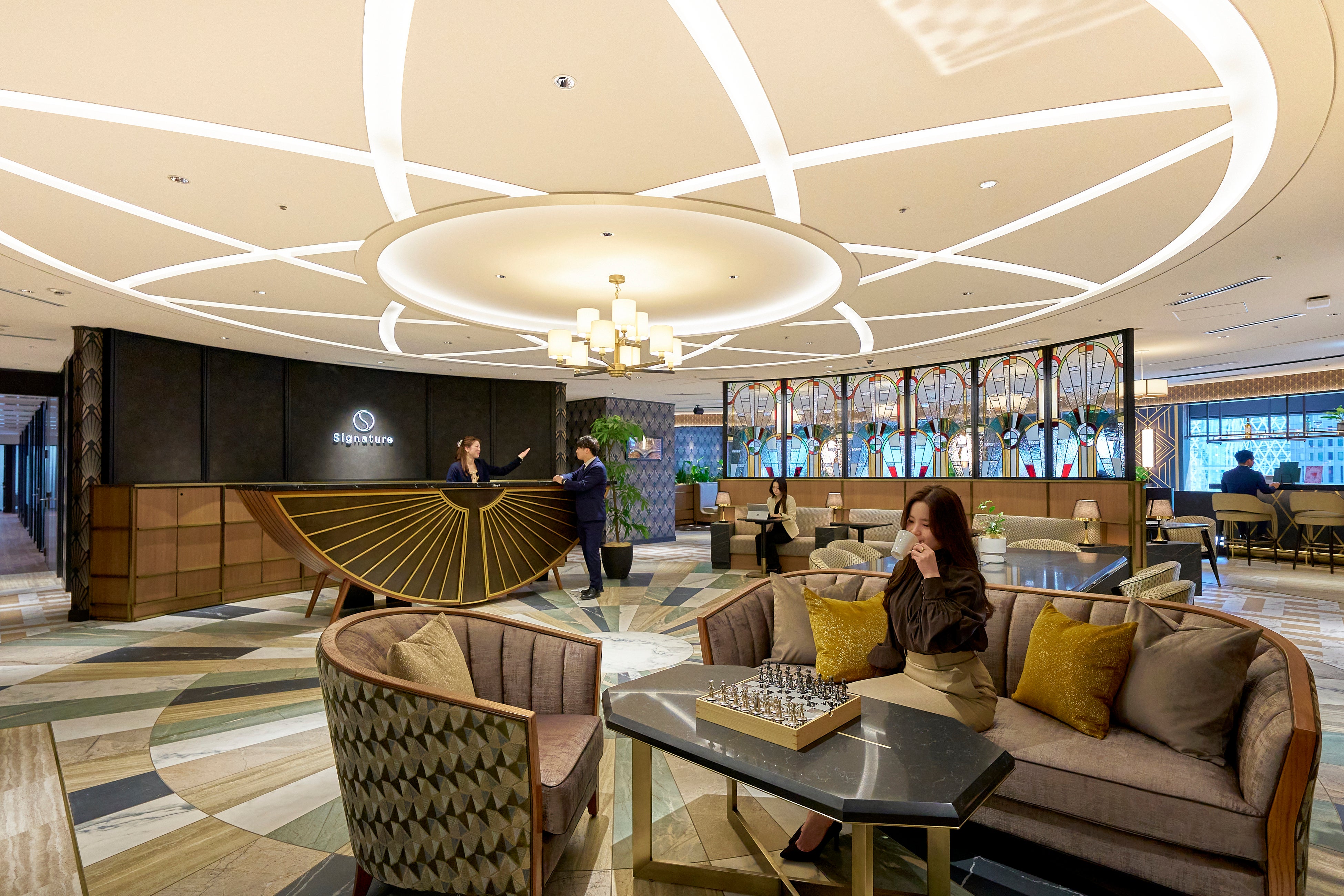 本センターは、都市構造・建築コンセプトを受け継ぎ、デザインコンセプトを「光の環」と定めました。永遠性・中心性を表すこの造形を空間全体に反映し、連続する円形の構造や動線が、洗練された一体感と安らぎを生み出します。さらに、光や自然界の美しい造形をインテリアに落とし込み、都心に居ながらも自然が持つ豊かさや安らぎを感じられる空間体験を提供します。アールデコ様式を取り入れた上質なデザインは、まさに最上級"大人のコワーキング"を体現する「シグネチャー(Signature)」ブランドにふさわしいもの。レセプション、ラウンジ&バーカウンター、ドローイングルーム、プライベートオフィス、ミーティングルーム、フォンブースまで、用途ごとに最適化されたスケールと素材・照明設計を施し、静けさ・私密性・ホスピタリティを高次元で両立します。ビジネスに集中しながら感性も刺激される、唯一無二のオフィス空間がここに誕生します。