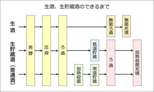 生酒は、60℃ほどの加熱処理(火入れ)を一度も行わないお酒です。しぼりたてのフレッシュな香味を楽しむ酒で、冷やして飲むのに適しています。
