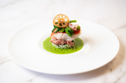 天草からの魚介とアスパラガスのシャルロット仕立て