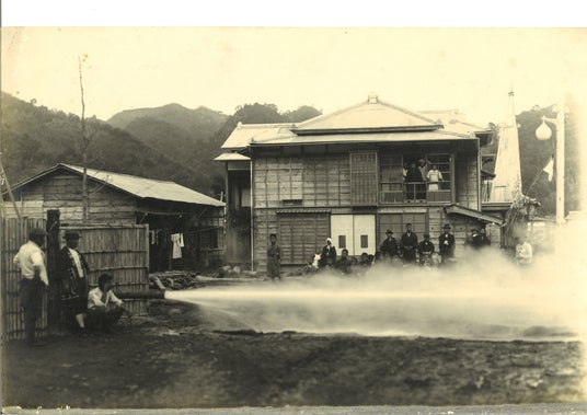 大正15年(1926年)11月22日正午、突然の大きな音とともに、地上約50mの上空を突き刺すほどの大噴湯が発生しました。この奇跡の源泉を多くの方に愉しんでもらいたいとの想いから、同年「玉峰館」は開業しました。以来、湯とともに歴史を重ね、玉峰館は創業100周年を迎えました。その源泉は、今もなお絶えることなく湧き続けています。
