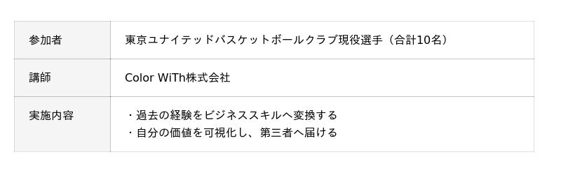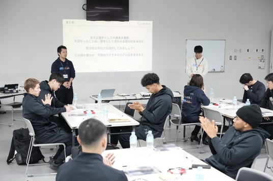 日本管財ホールディングス株式会社(本社:東京都中央区、代表取締役社長:福田 慎太郎、以下「当社」)は、グループ会社である日本管財株式会社が、2026年2月25日(水)に東京ユナイテッドバスケットボールクラブの現役選手に向け、人生の歩みを振り返り、自身の強みを可視化し、ビジネススキルへ変換することを目的としたワークショップを開催したことをお知らせいたします。