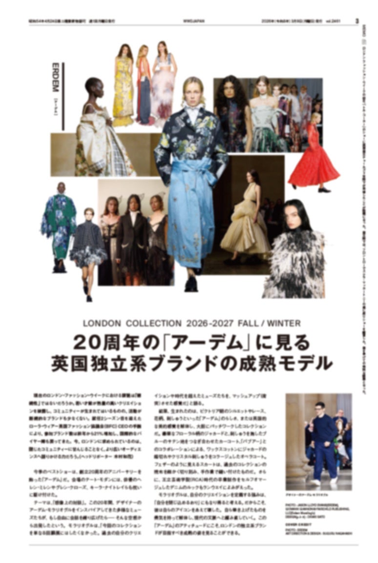 「WWDJAPAN」3月9日発売号は、2026-27年秋冬シーズンのロンドン&ニューヨークコレクションの詳報をお届けします。