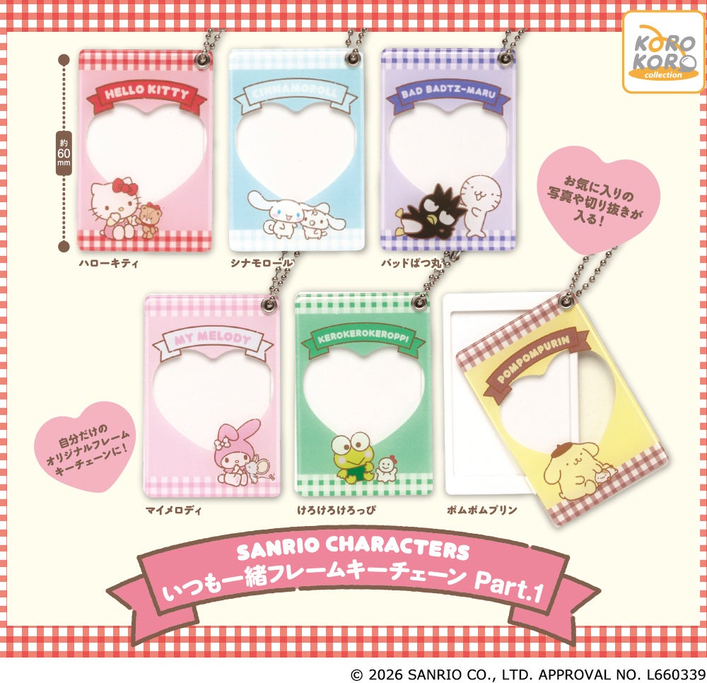 アイピーフォー株式会社(本社:東京都豊島区、代表取締役社長:小濱 剛)は、「サンリオキャラクターズ いつも一緒フレームキーチェーンPart.1」(1回300円・税10%込、全6種)を2026年3月下旬から順次、全国のカプセルトイコーナーにて発売予定です。