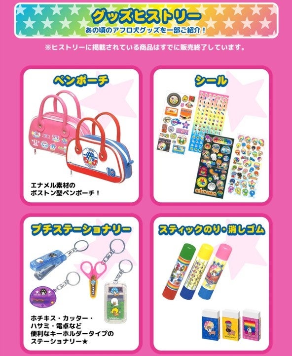 あの頃のアフログッズを一部グッズヒストリーとして展示しています。
