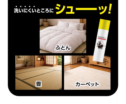 洗いづらい布団・カーペット・畳などにも使用でき、布団の入れ替え時期や、急にかゆみが気になった際など、必要なタイミングで手軽にダニ対策が行えます。
