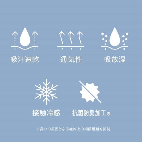 2026年春夏シーズンは接触冷感機能を備える【冷】と汗悩みを解消する【快】を新たにラインアップに加えます。夏も心地よく過ごせる機能を詰め込んだアイテムで自分らしいファッションを楽しむ方を応援します。