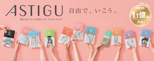 アスティーグは2025年にインナーウェアをラインアップに加え、レッグウェアとインナーウェアをトータルでご提案するブランドになりました。ブランドコンセプト「自由で、いこう。」には、肌と心に気持ちいいアイテムを身に付けることで、毎日を前向きに楽しんでほしいという想いを込めています。その日の気分に合わせて選んでいただけるよう、パッケージに商品の機能や特徴を漢字一文字で分かりやすく表現しています。