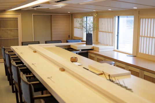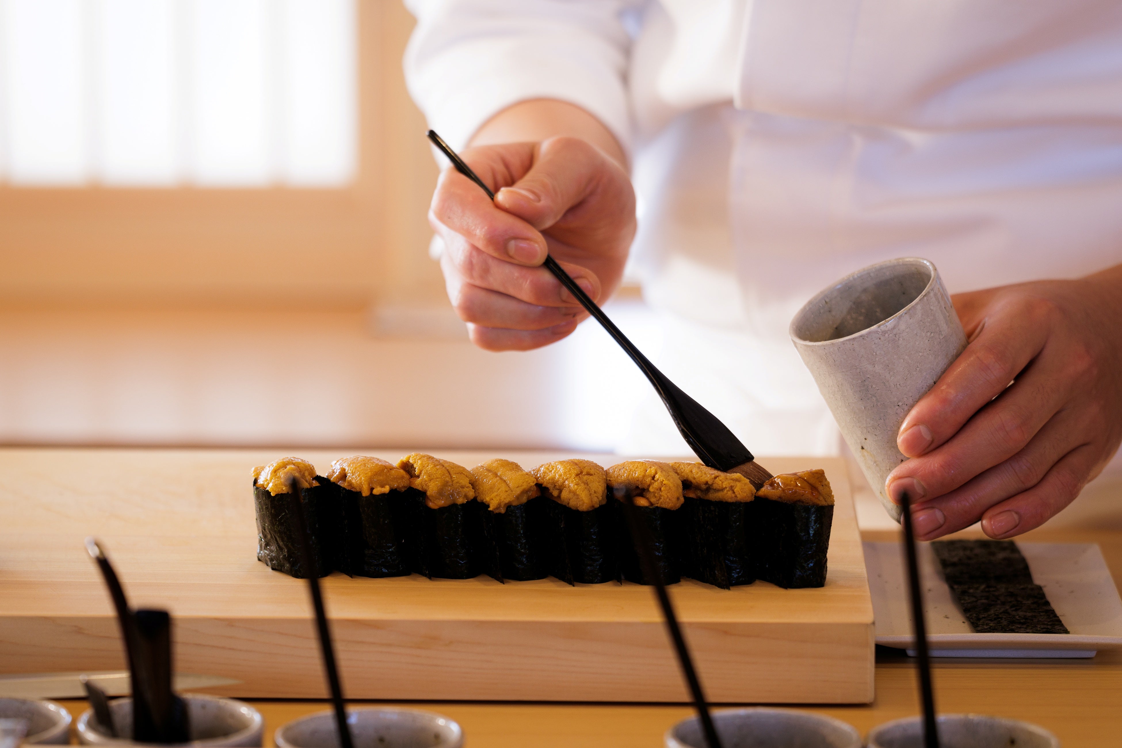 『サンセット桜クルーズ』で乗船する「鮨 おりがみ」では、ミシュラン1つ星を誇る、銀座「鮨 むらやま」村山大作氏監修のお食事をお愉しみいただけます。豊洲を代表する老舗仲卸「石司」の天然本まぐろなどの厳選素材を使用し、職人が丹精を込めて握るお寿司と、食事に合わせて厳選した日本酒を心ゆくまでご堪能ください。