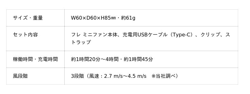 さらに、「フレ ハンディファン」シリーズの中で最長となる、最大約10時間の連続使用を実現。
