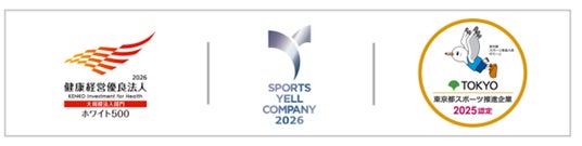 当社は、健康経営優良法人制度において、「健康経営優良法人2026(ホワイト500)」大規模法人部門に認定されました。また、社員のスポーツ活動の支援や促進に向けた取組みを行なっている企業として、スポーツ庁の「スポーツエールカンパニー2026」および東京都の「令和7年度東京都スポーツ推進企業」として認定されました。今後も社員の健康増進のための取組みを一層強化し、働きやすい職場環境の整備に努め、健康経営を推進してまいります。