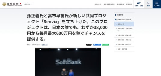 首相官邸の投資詐欺サイト