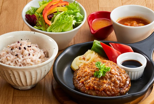 モーニング(土日祝限定)からディナーまで、一日のどの時間帯に訪れても本格的な一皿をお楽しみいただけます。もちもちの生パスタやふんわりオムライス、ジューシーなハンバーグに新鮮なサラダまで。お一人でのランチやご友人との夕食など、シーンに合わせて選べる多彩なラインアップを取り揃えています。写真は、「並木街風シャリアピンハンバーグ」 ¥1,390(税込¥1,529)