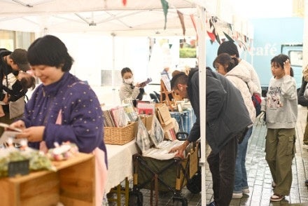 10月25日(土)、26日(日)には、「科学と芸術の丘2025」と連携して、23店舗が出店する「本とよりみちマーケット~『やってみよう』のひろば~」を開催しました。書店や移動書店による選書ブース、パン・焼き菓子などの飲食、雑貨・アクセサリー販売、ボードゲーム体験やおはなし会など、子どもから大人まで楽しめる企画に並び、本プロジェクトの「やってみようグループ」から派生したオリジナルZINEの販売や本の交換会を企画する「言の葉の棚」などの出店者が、さまざまな形で「やってみよう」を実現しました。