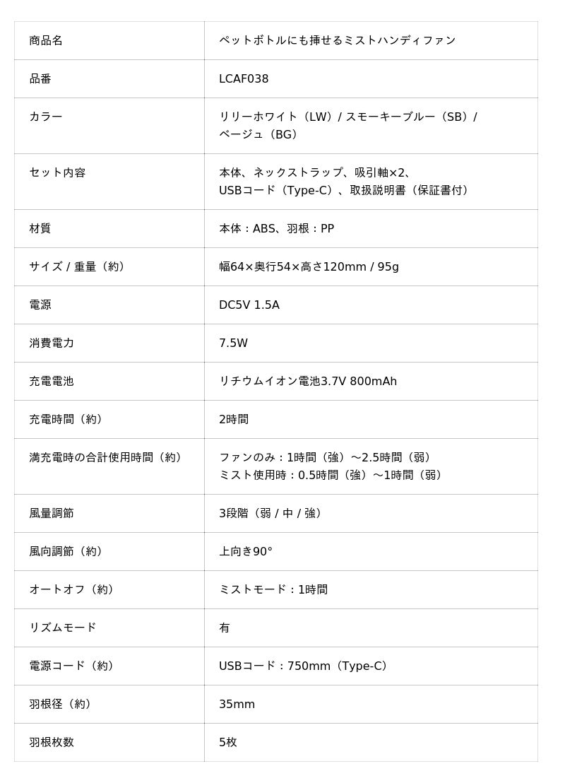 「ペットボトルにも挿せるミストハンディファン」LCAF038