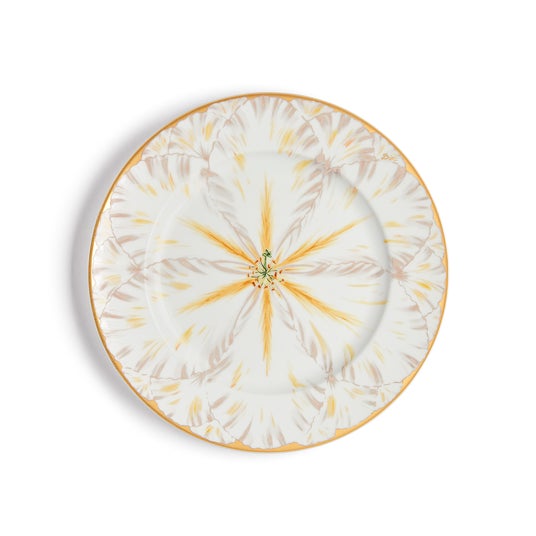 3つのカラーパレットで展開される優雅な花びらは、ディナープレート、デザートプレート、ティーセット、コーヒーセットなどの洗練された食器に咲き誇ります。リモージュ磁器で製作され、24Kゴールドのディテールで強調されたこれらのアイテムは、ハンドペイントの繊細さを想起させます。