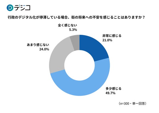 - 行政のデジタル化が停滞している場合、約7割が街の将来を不安視