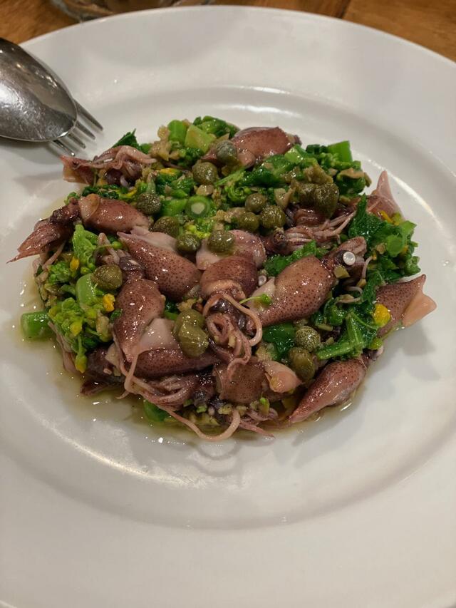 菜の花とホタルイカとケイパー、ラディッキオのオーブン焼き、