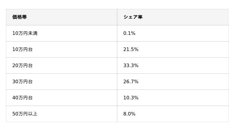 価格帯別 市場動向 ― ボリュームゾーン「20~30万円台」は変わらず―