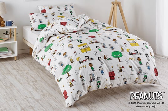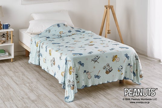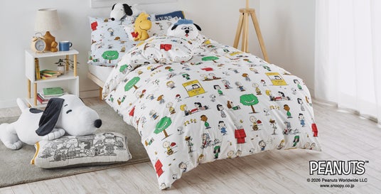 2026年春夏シーズンは、コミックに登場する仲間たち「ピーナッツ・ギャング」が大集合した、楽しくてかわいいアートが魅力のシリーズ「PEANUTS GANG COLLECTION」が新登場。掛けふとんカバー、ピローケース、タオルケットなどを展開します。また、スヌーピーと仲間たちがビーチでハッピーに楽しむデザインの「SUMMER BEACH COLLECTION」では、サラッとした素材で暑い夏も快適に使えるクールケットが登場。新生活のスタートにぴったりな、カラフルで明るいベッドルームを演出します。