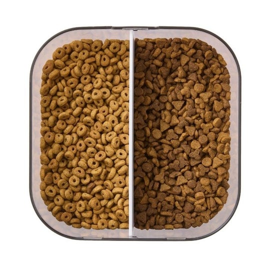 - 2種類のフードを左右独立のタンクで分けて保管し、いつもの食事スタイルで与えられるタイマー式自動給餌器です。お留守番のときも、うちの子に合わせたいつものごはんで、健康管理をサポートします。- 1日最大6回の給餌可能。給餌時間・回数はタイマーで設定できます。