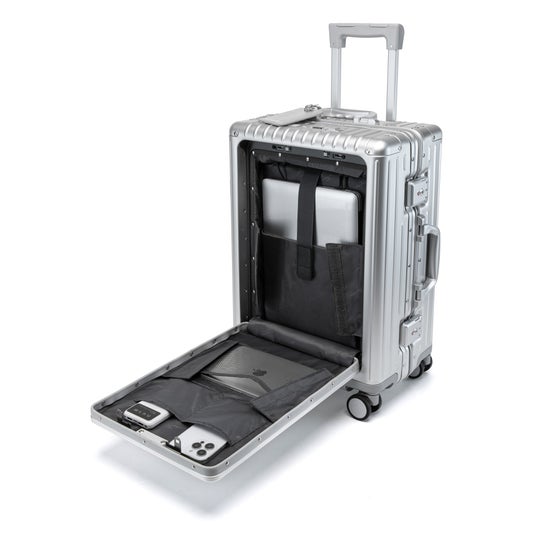 弊社は「アルミの所有感はそのままに、移動をもっとスマートにしたい」という声に応えるため、アルミボディと多機能性の両立を実現する設計を追求。出張や移動の多いビジネスパーソンの使い勝手を起点に、所有感・耐久性・機能性を高次元で融合させたハイエンドモデルとして本商品を開発しました。