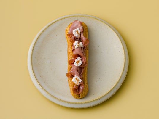 サクッと軽い食感のエクレア生地に各種具材を挟んだ人気メニュー「パニーノ」に、新作が登場。スライスしたイタリア産のボローニャソーセージ「モルタデッラ」をたっぷりとサンドし、ミルクのやさしい甘さを感じる「リコッタチーズ」と、香り豊かなナツメグをトッピングしました。お酒のお供にもぴったりなメニューです。