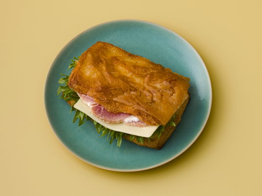 四角いクロワッサンに、しっとり柔らかなホワイトロースハムと、マイルドな味わいのアメリカ産チーズ・モントレージャックを合わせました。クロワッサンの芳醇なおいしさを、ハム&チーズが引き立てる、最強コラボの王道メニューです。家で味わう際は、リベイクしてサクサク食感を楽しむのもおすすめです。