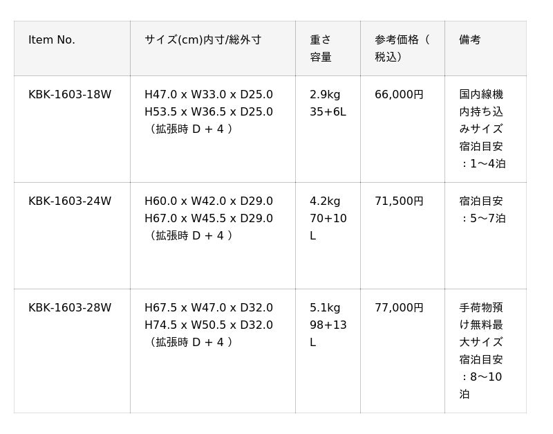 コンセプト「快適な旅に夢を馳せ、その大切なシーンをサポートする」に基づき、スーツケースから旅行小物、ビジネス・カジュアル向けバッグまで幅広い商品展開を行っている。