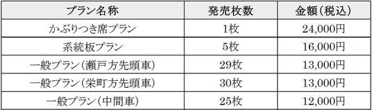 ※かぶりつき席プランでは、尾張瀬戸方の最前部席(かぶりつき席)に着座いただけます