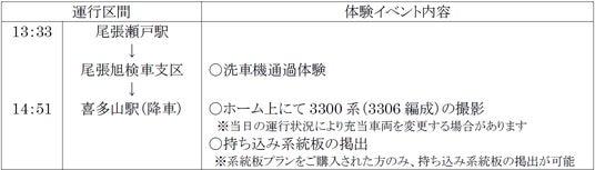 同イベントは、瀬戸線で1編成のみ運行している3300系車両を使用して、普段は乗車したまま入線することができない喜多山駅の引き込み線への入線や、尾張旭検車支区での洗車機通過等を体験するものです。タイトルにある「せと弁」とは、参加者全員に配布する瀬戸名物を使用したお弁当のことで、熨斗には瀬戸の方言「せと弁」が表記されています。