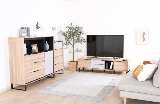 30~40代ファミリー層の暮らし向けに、テレビ台から4段チェスト、サイドキャビネットの3アイテムを展開